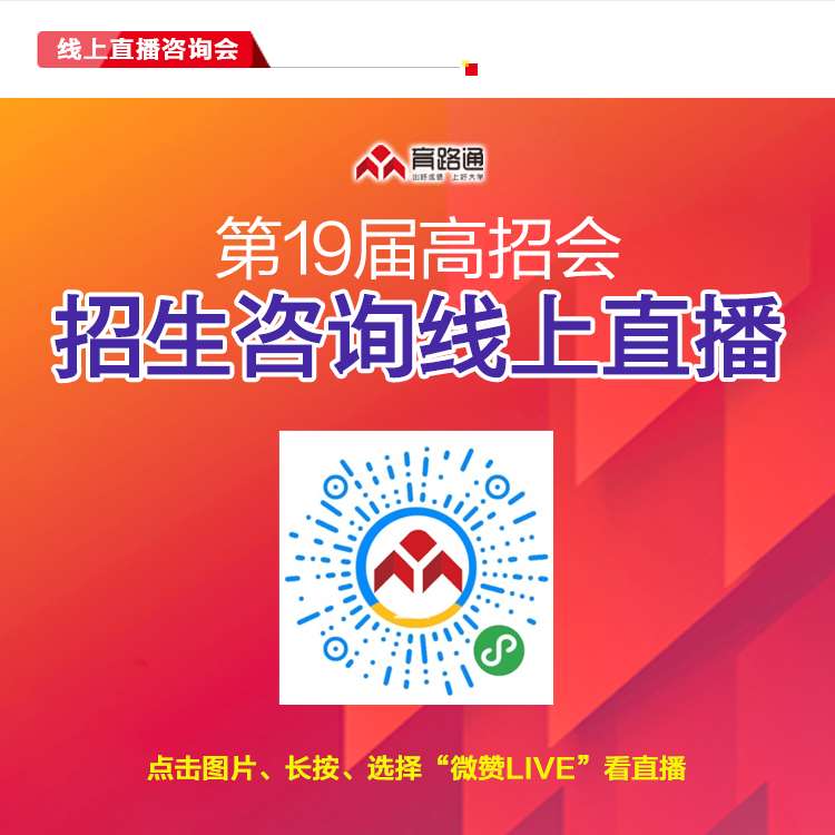 2.参与方式:微信搜索“育路通”微信小程序,即时“码”上咨询参会高校。可领取招生简章、招生海报、宣传手册等资料,并可通过文字、语音、电话、互加微信好友等方式与招办老师进行即时互动。同时,各参会高校还将举办“2020年招生线上直播咨询会”,为高考家庭集中解疑答惑。